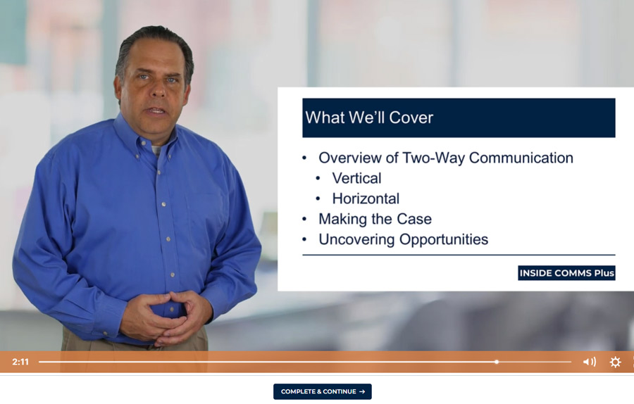 INSIDE COMMS Plus courses are about an hour each and include video lessons, exercises and downloadable materials. Perfect for individuals and teams and as an add-on to your existing L&D curriculum.